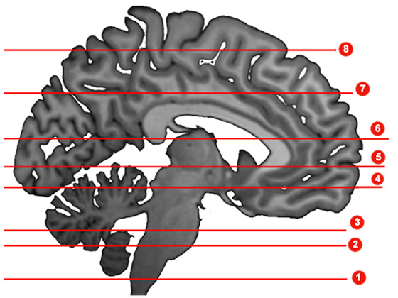 Parkinson's Disease is characterized by a loss of cells in a specific area of the brainstem. Select the level of brainstem in which you would normally find the cell bodies of these neurons.